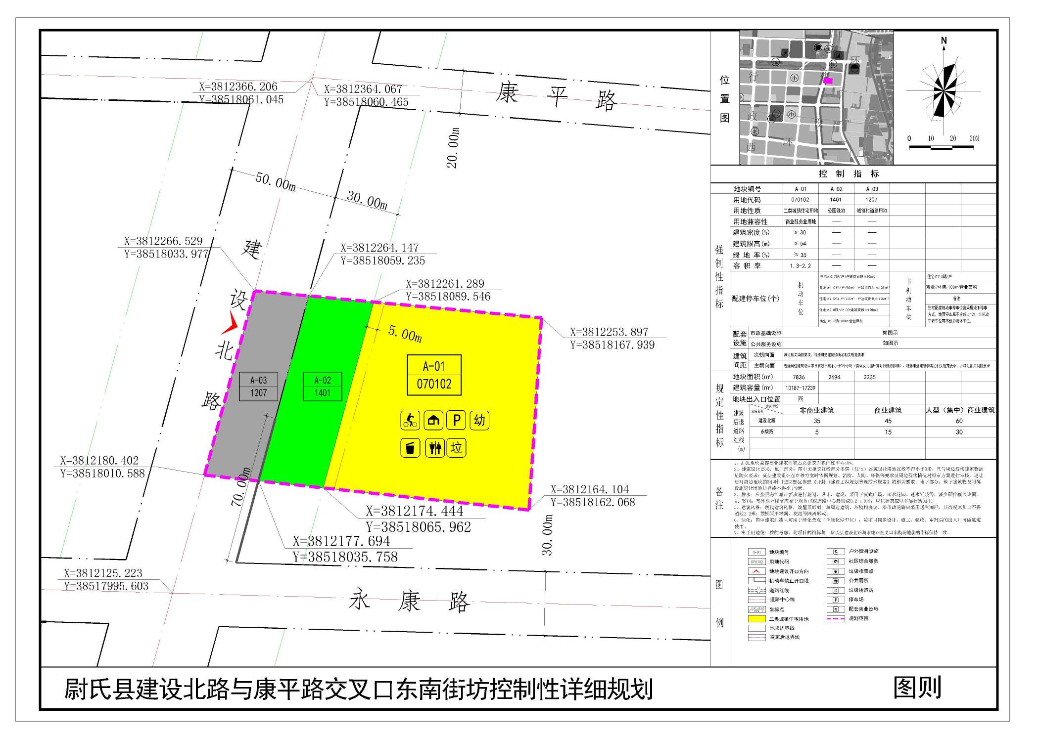 尉氏县建设北路康平路交叉口东南街坊位于尉氏县建设北路康平路交叉口东南,规划范围内用地性质为二类城镇住宅用地、公园绿地、城镇村道路用地。详见附图“尉氏县建设北路康平路交叉口东南街坊控制性详细规划(图则)”。