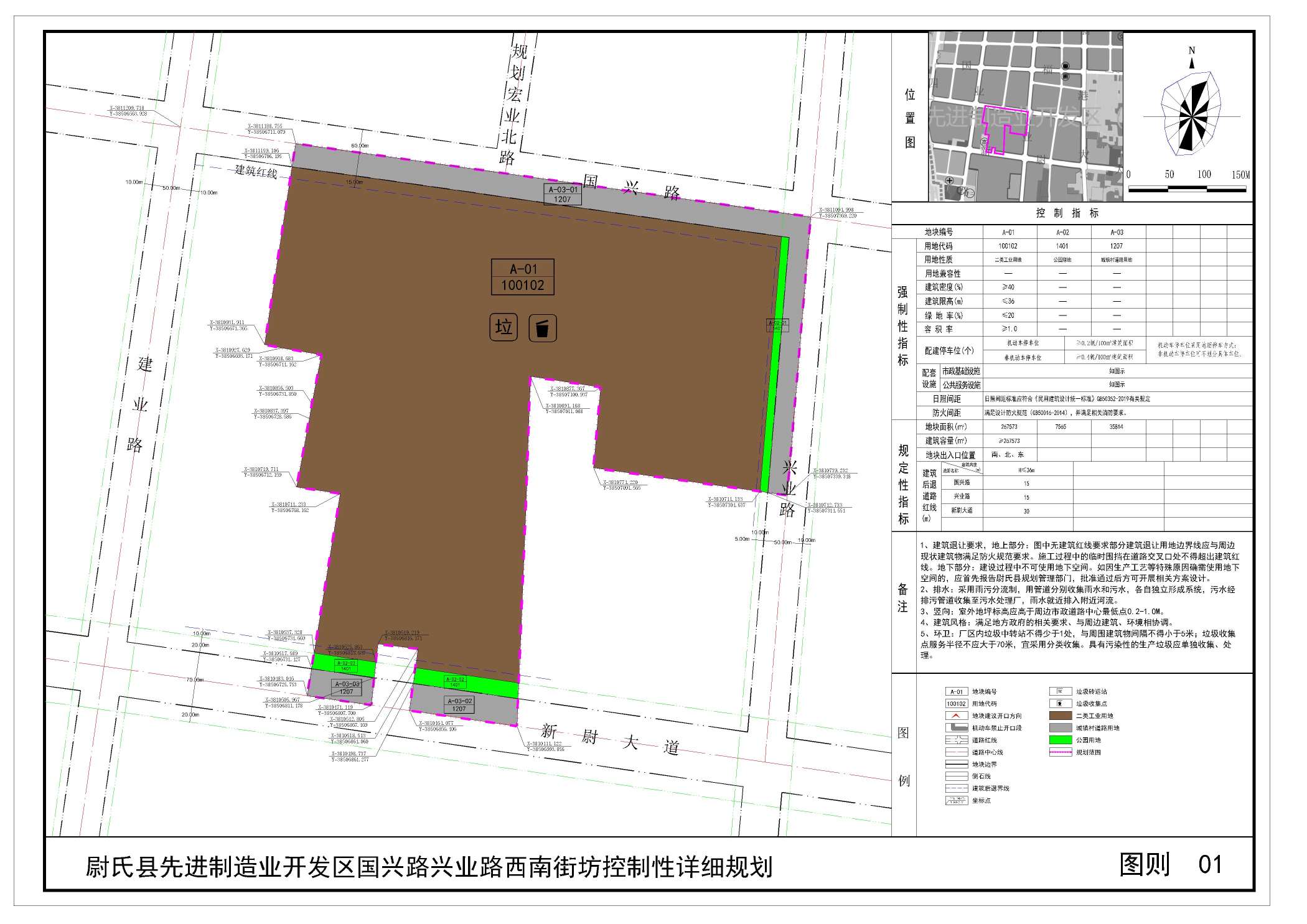 尉氏县先进制造业开发区国兴路兴业路西南街坊位于尉氏县先进制造业开发区国兴路与兴业路交叉口西南,规划范围内用地性质为二类工业用地、公园绿地、城镇村道路用地。详见附图“尉氏县先进制造业开发区国兴路与兴业路交叉口西南(图则)”。