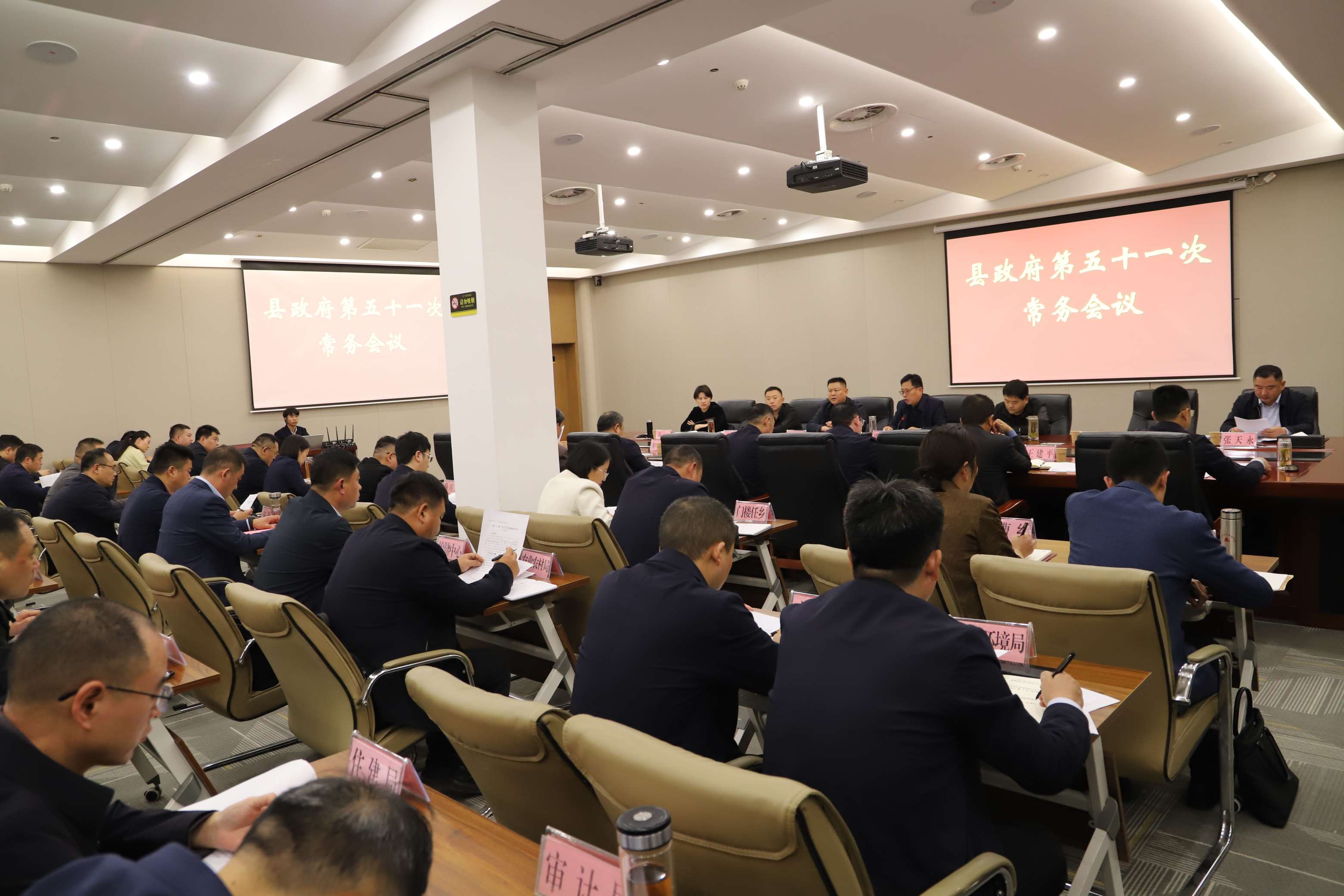 10月14日下午,县长陈志刚主持召开县政府党组会议暨县政府第五十一次常务会议,传达学习习近平总书记在《求是》杂志上发表的重要文章《纵深推进全国统一大市场建设》,学习《治安管理处罚法》;安排部署乡村振兴、污染防治、安全维稳、经济运行、“三秋”生产等重点工作。县领导马帅、司佳、张天永、海鸥、刘建廷、孙胜利、杨清泉、貊四新、王建平、康青峰及县直相关单位、各乡镇负责同志参加会议。