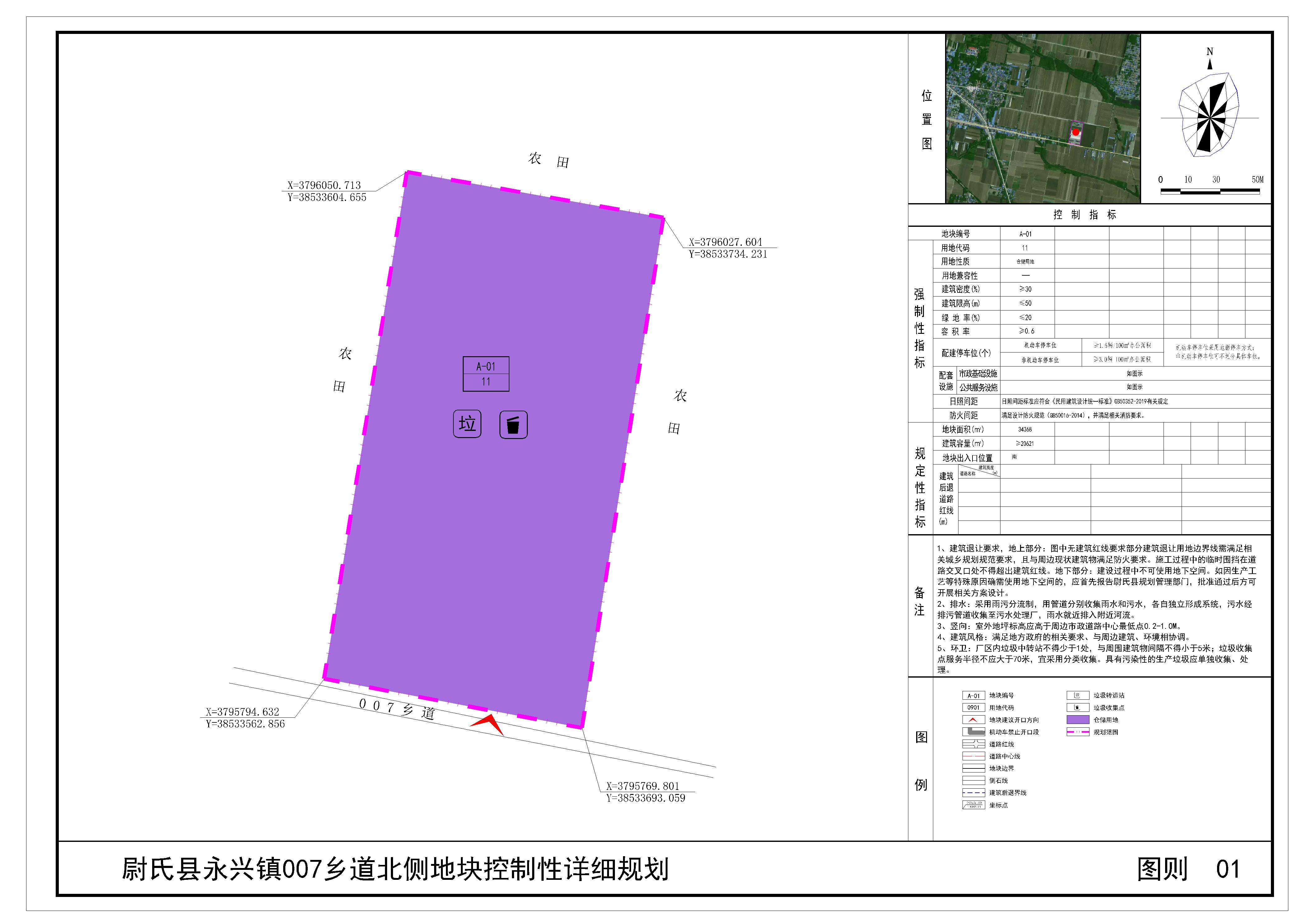 尉氏县永兴镇007乡道北侧地块位于尉氏县永兴镇007乡道北侧,规划范围内用地性质为仓储用地。详见附图“尉氏县永兴镇007乡道北侧地块控制性详细规划(图则)”。