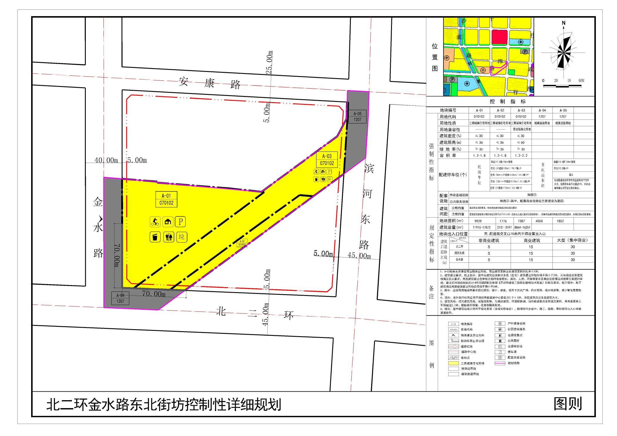 北二环金水路东北街坊位于北二环与滨河东路交叉口西北,因地块用地边界不规整,建筑限高不一致,现拟修编该区域内三个地块的建筑限高统一调整为不高于60米,容积率按照按照三块地指标综合计算。详见附图“北二环金水路东北街坊控制性详细规划(图则)”、“北二环金水路东北街坊控制性详细规划(修编)”。