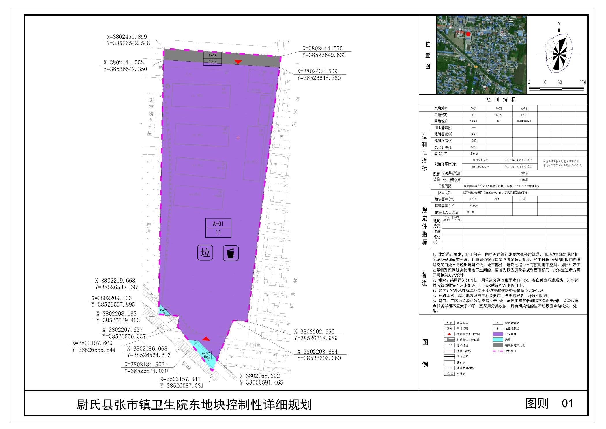 尉氏县张市镇卫生院东地块位于尉氏县张市镇卫生院东侧,规划范围内用地性质为仓储用地、沟渠、城镇村道路用地。详见附图“尉氏县张市镇卫生院东地块控制性详细规划(图则)”。
