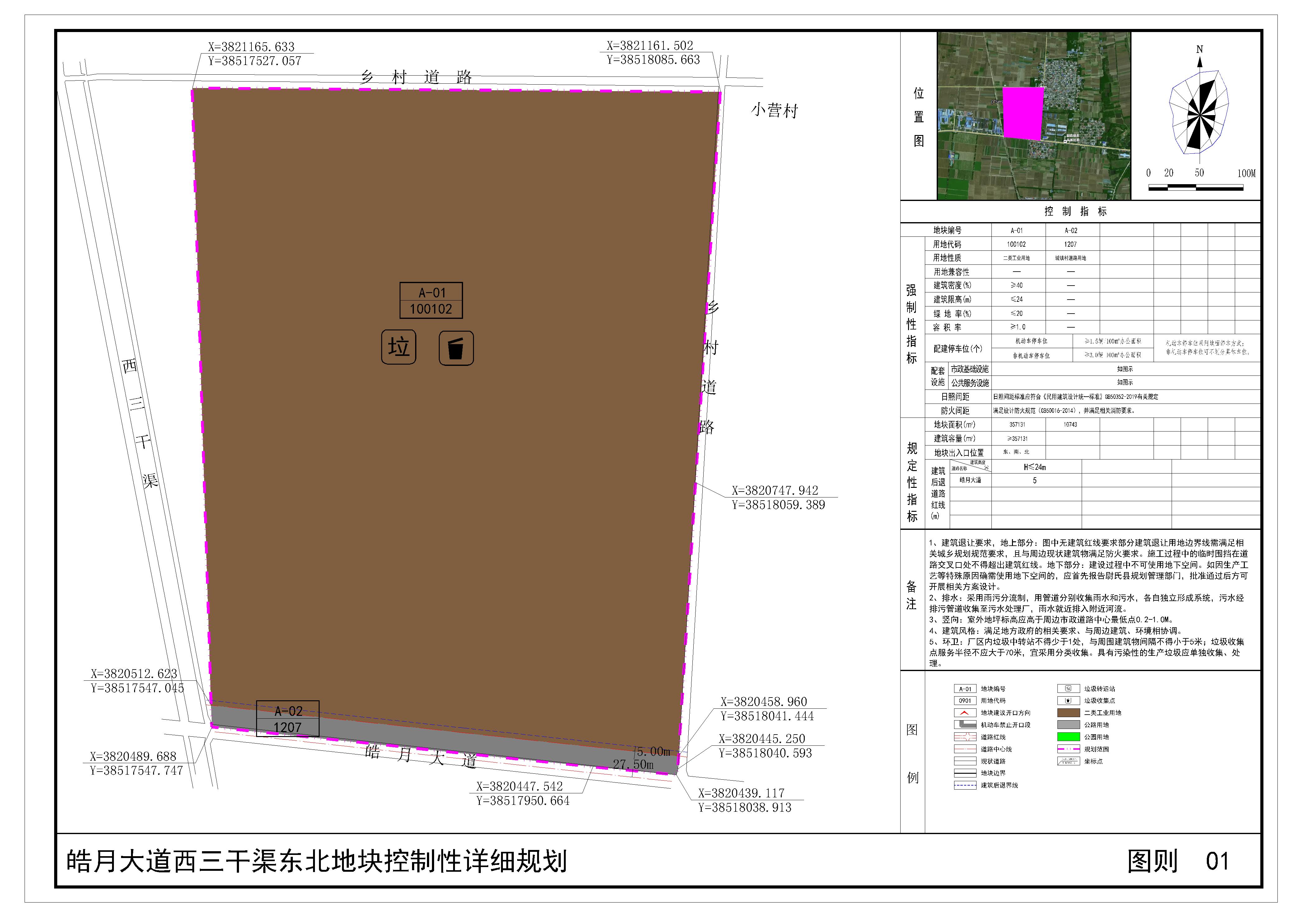 皓月大道西三干渠东北地块位于尉氏县庄头镇皓月大道西三干渠东北,规划范围内用地性质为二类工业用地。详见附图“皓月大道西三干渠东北地块控制性详细规划(图则)”。