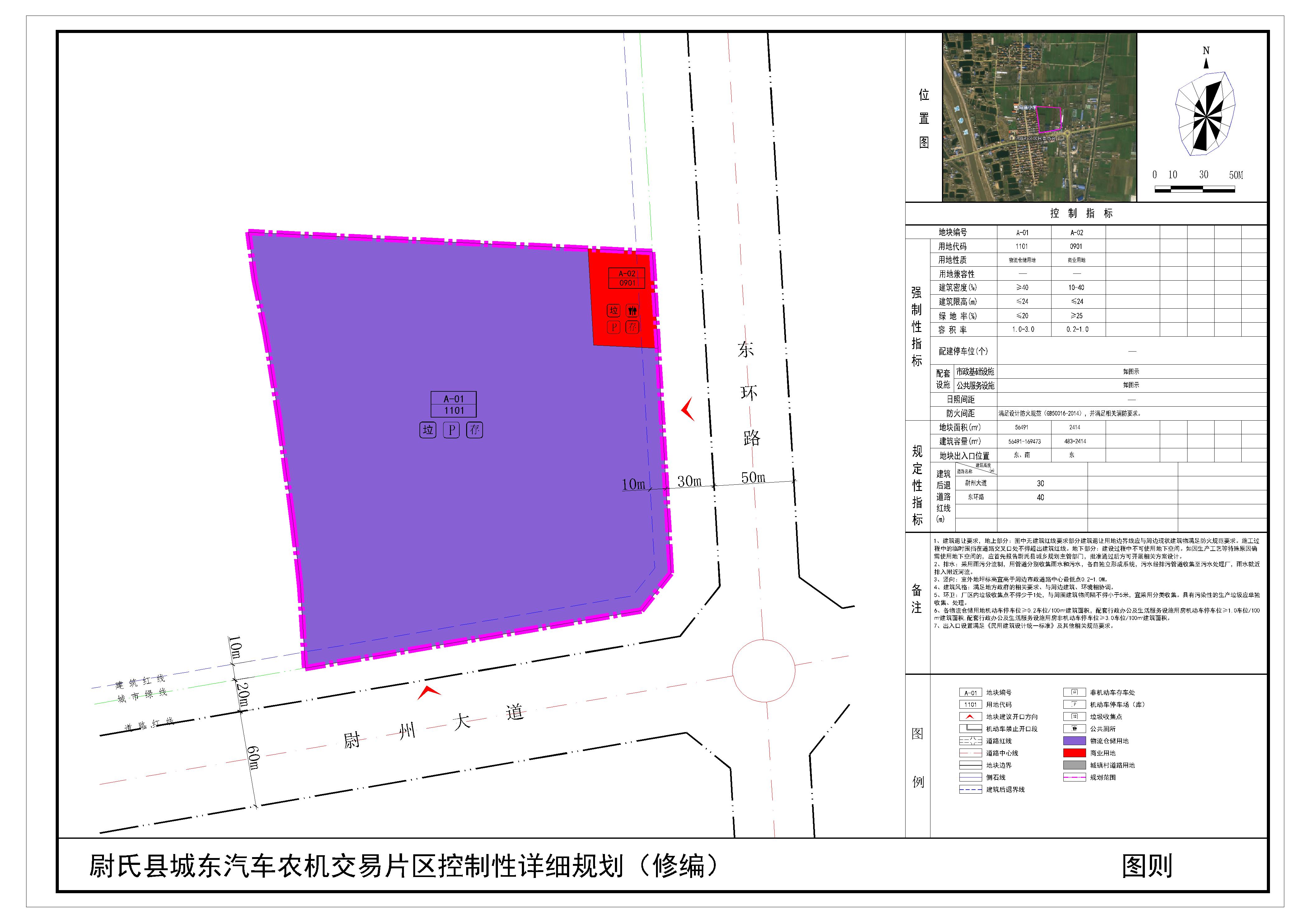 尉氏县城东汽车交易片区位于尉氏县尉州大道与东环路交叉口西北,规划范围内用地性质为物流仓储用地、商业用地。详见附图“尉氏县城东汽车农机交易片区控制性详细规划(修编)(图则)”。