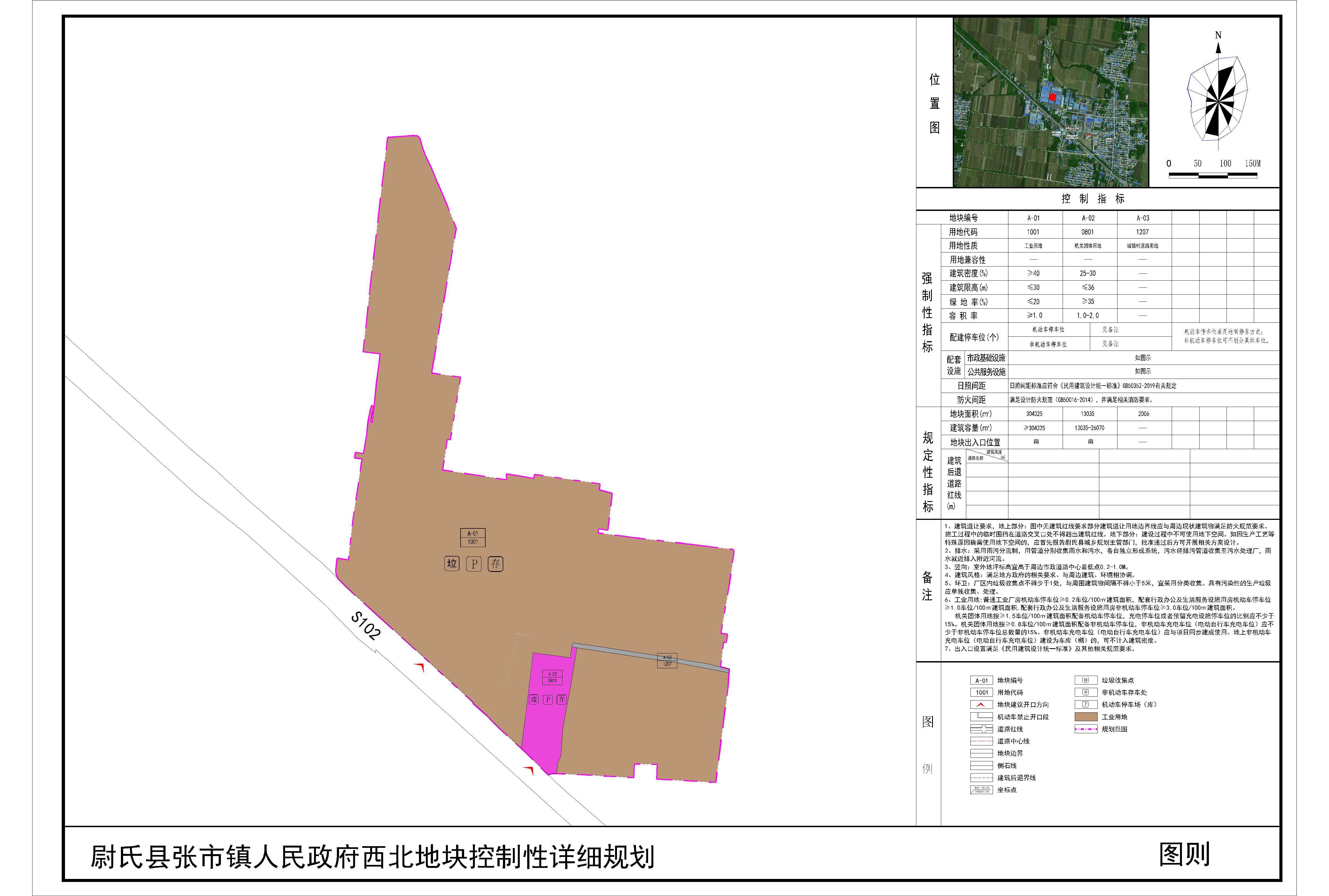 尉氏县张市镇人民政府西北地块位于尉氏县张市镇政府与S102交叉口西北,规划范围内用地性质为工业用地、机关团体用地。详见附图“尉氏县张市镇人民政府西北地块控制性详细规划(图则)”。