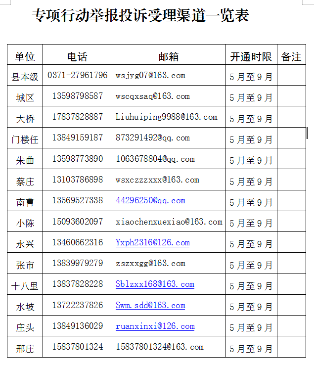附件:专项行动举报投诉受理渠道一览表