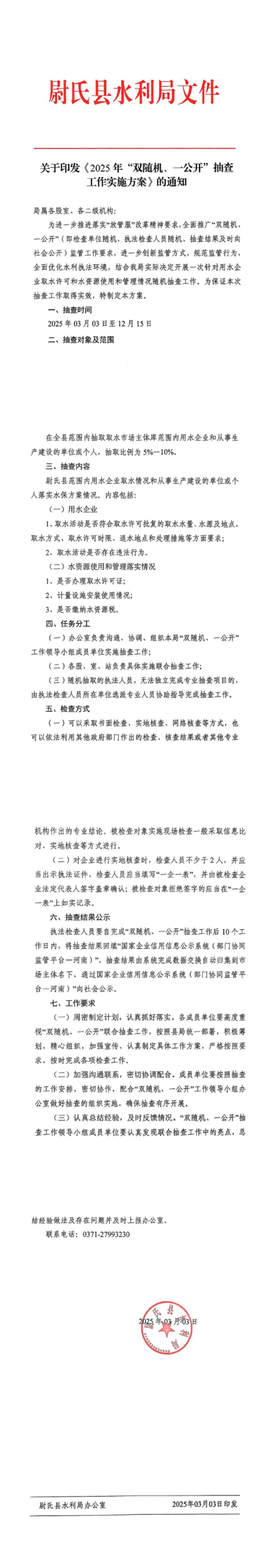 尉氏县水利局专项检查计划